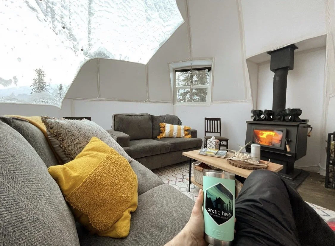 We will dine together twice a day in the igloo (plus coffee and snacks before yoga), and we will typically pack up lunch to go with us, wherever we're headed for the day. Although many activities are custom-planned depending on the specific weather we're dealt with (which is how life in Alaska just is!), you may find yourself at a bonfire on the river, experiencing yoga under a blanket of stars and dancing Northern Lights in the igloo, sharing a beer over a board game with new friends and more.